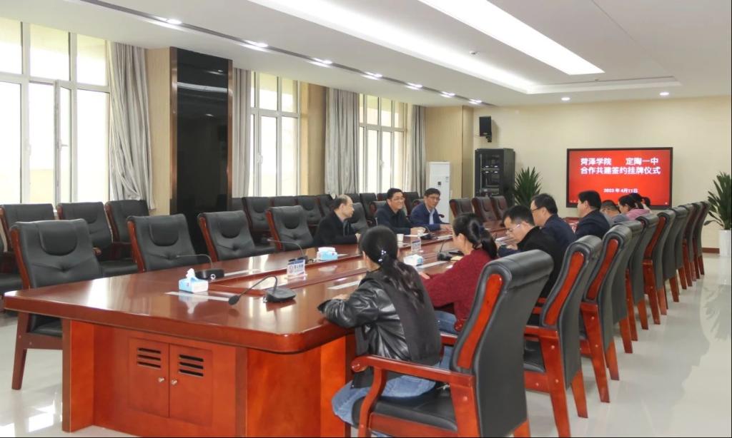 定陶一中对QY千亿球友会,QY球友会体育官方网站一行表示热烈欢迎。座谈中,游秋亭校长介绍了定陶一中语文学科基地和历史教研组情况,希望语文历史两个学科老师,借助菏泽学院平台,加强教研融合、双师共建,在学科教学、教育管理和教学研究等相互学习、真诚合作,不断提升教育教学和教研水平,推动教师专业成长和学科基地建设。随后,QY千亿球友会,QY球友会体育官方网站朱世民书记和定陶一中游秋亭校长在《菏泽学院双师型教师培训基地共建协议》上郑重签字,希望双方能够进一步加强双师型合作,共同培养应用人才、助力学生发展。