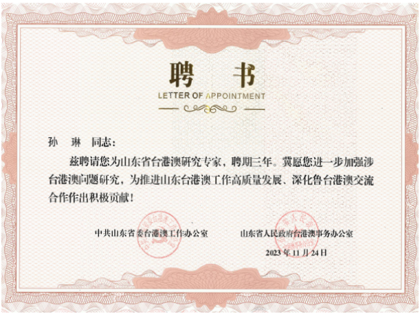 山东省台港澳研究专家(2023):孙琳