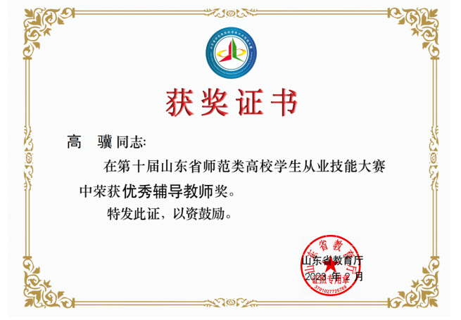 第十届山东省师范类高校学生从业技能大赛优秀辅导老师(2023):高骥
