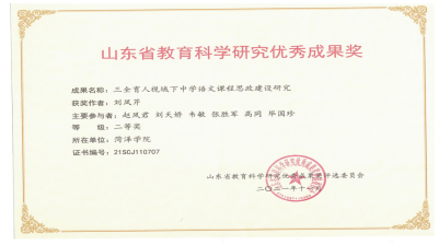 山东省教育科学研究优秀成果奖二等奖(2021):“三全育人视域下中学语文课程思政建设研究”