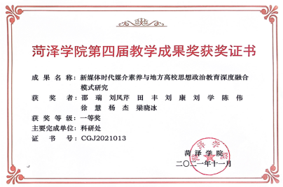 菏泽学院第四届教学成果一等奖(2021):新媒体时代媒介素养与地方高校思想政治教育深度
