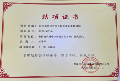 菏泽市社科联项目(2023-2024):“鲁西南农村中小学国家通用语言文字推广模式研究”