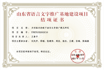 山东省语言文字推广基地建设项目(2022-2023):乡村振兴战略下语言文字推广模式研究